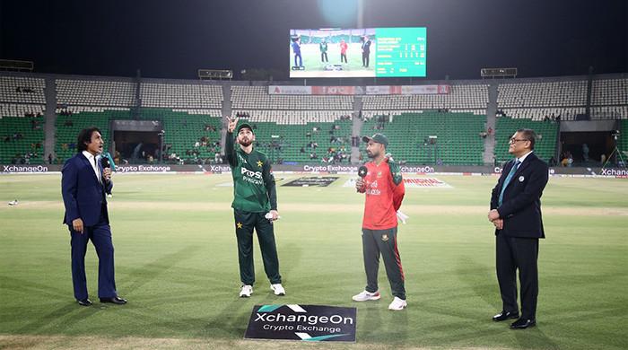 Pakistan skipper Salman Ali Agha and Bangladesh skipper Litton Das during the toss for the first T20I, Gaddafi Stadium, Lahore, May 28, 2025. — Facebook/PakistanCricketBoardPakistan elected to bat first against Bangladesh after winning the toss in the first T20I of the series being played...from The News International - Sports https://ift.tt/KiCxlGX