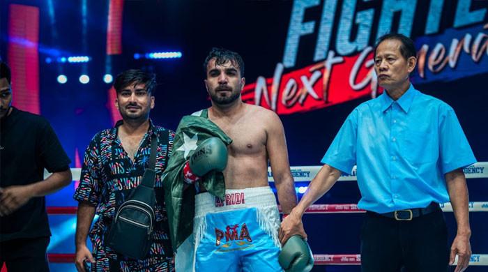 Pakistani middleweight boxer Shahir Afridi celebrates after winning fight. — Facebook/@iamshahirafridi/File Pakistan’s middleweight boxer Shahir Afridi triumphed in a high-stakes ranking bout in Thailand, defeating India’s Trijot Singh Bawa via technical knockout in the...from The News International - Sports https://ift.tt/FGRv6hA